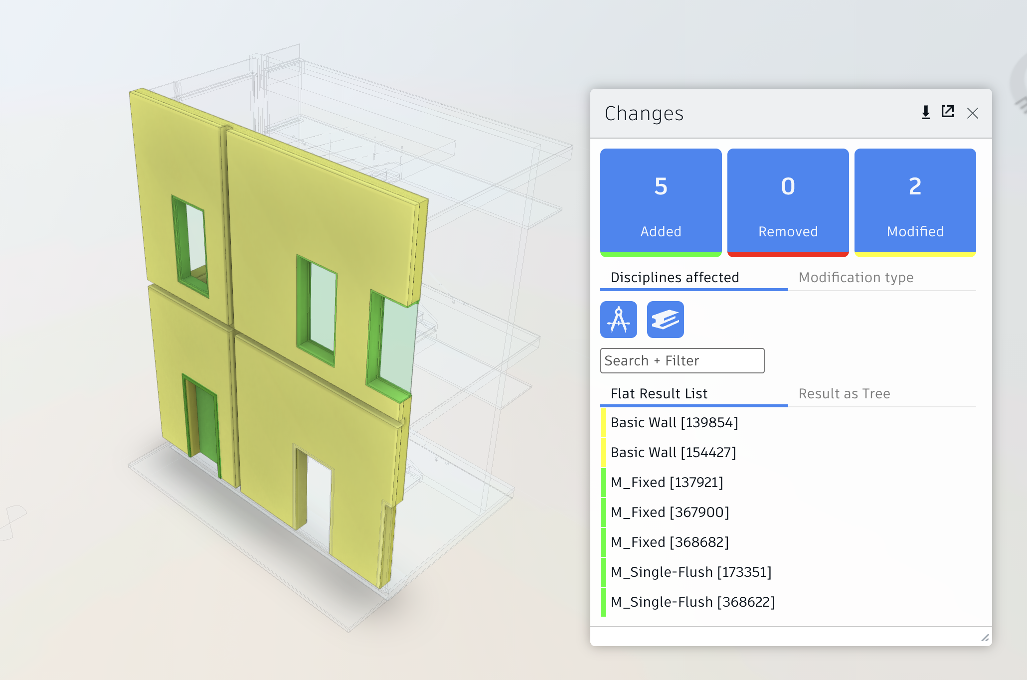 To facilitate understanding of the new call, let us look at a situation where we created an exchange that contains a subset of a Revit model. The Revit file was changed and consequently the exchange also updated from v2 to v3, to reflect the latest changes, in this case there were added doors and windows: